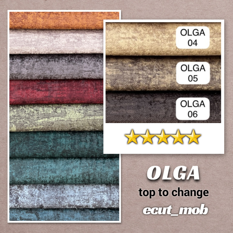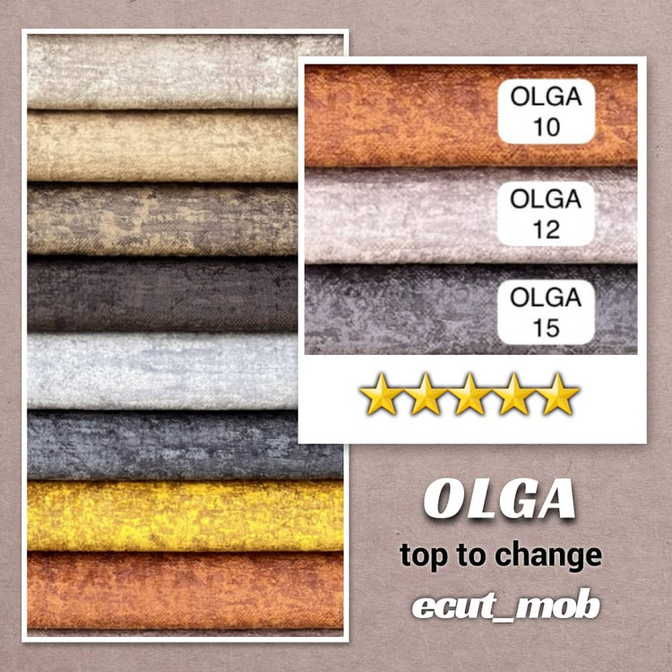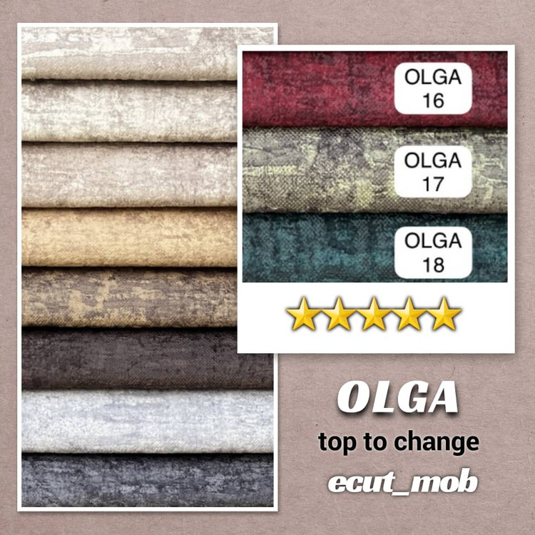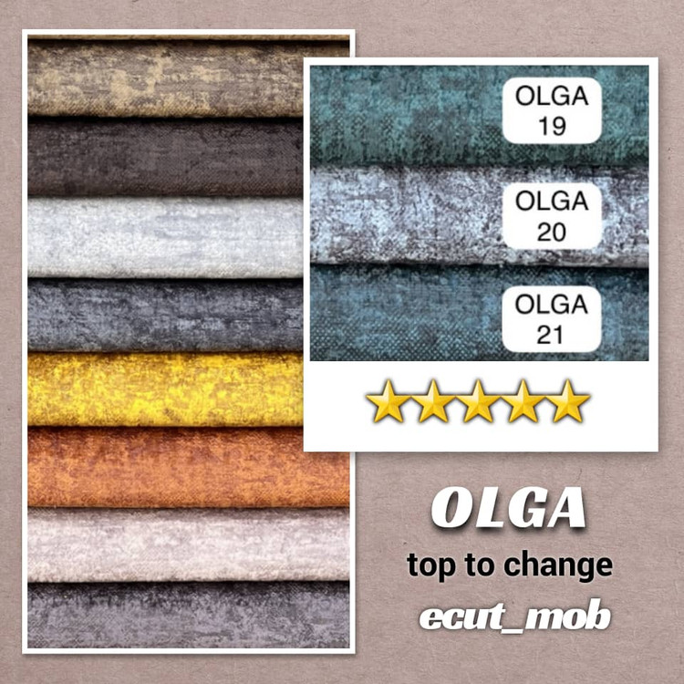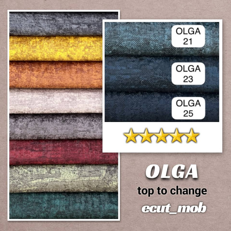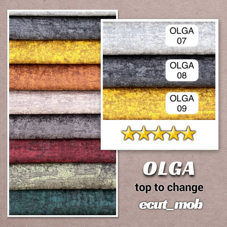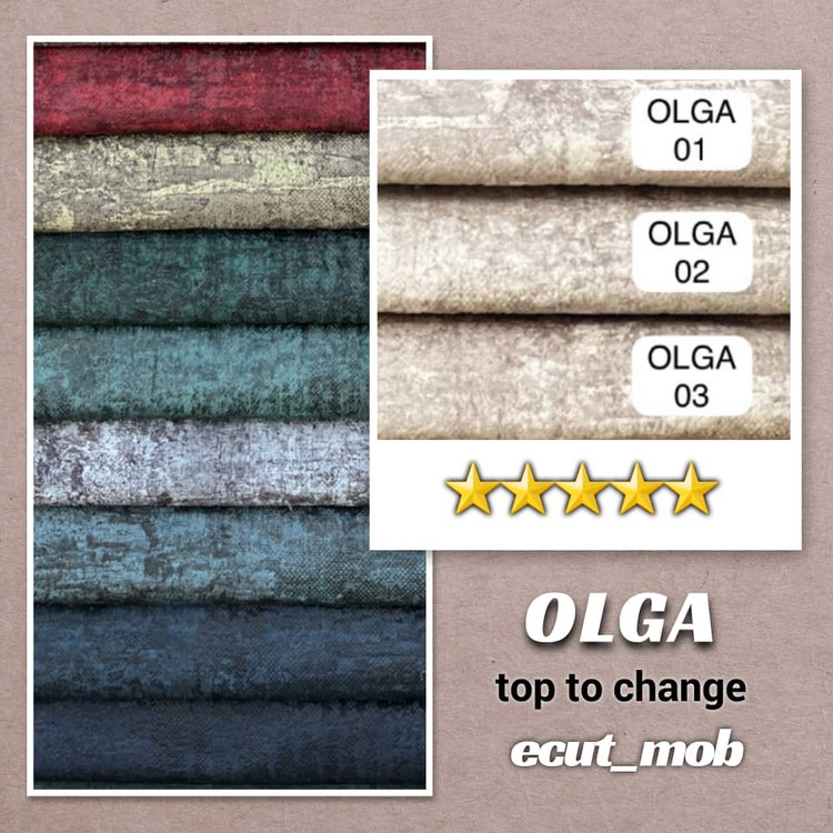 الگا در دستهی مخملهای پتینهای مدرن قرار دارد؛ با بافت نرم و لطیف، سطحی زنده و رنگهایی شارپ و پرانرژی که از هر زاویه، نوری متفاوت را بازتاب میدهند.