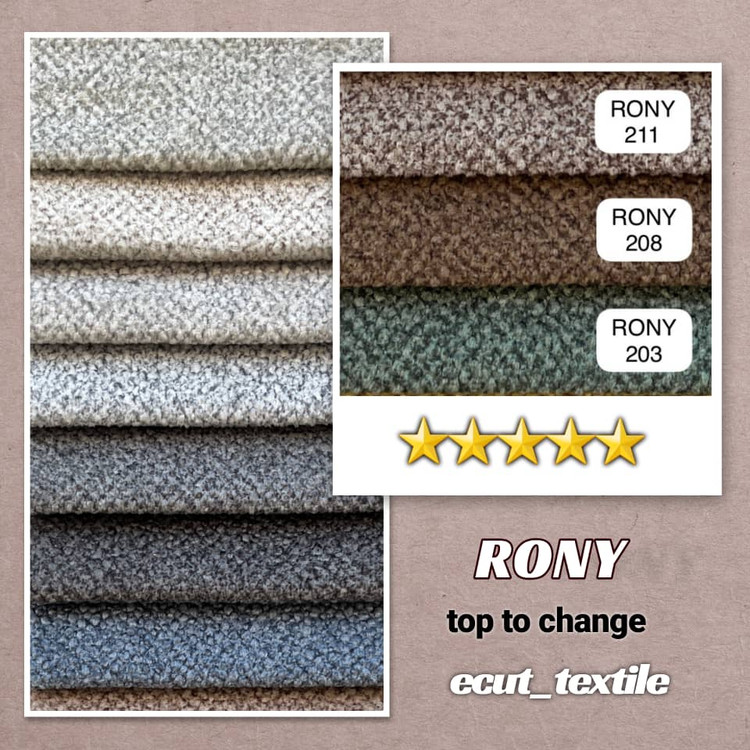 پارچه مبلی رونی (Roni) از مجموعههای خاص و محبوب گالری پارچه مبلی ایکات است؛ پارچهای از جنس بوکله ملانژ آستردار که بافتش میان نرمی، ایستایی و دوام تعادل کامل ایجاد کرده است.