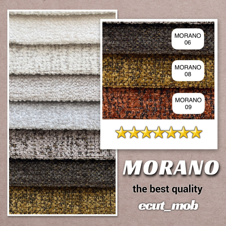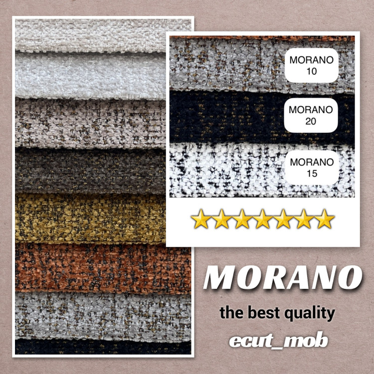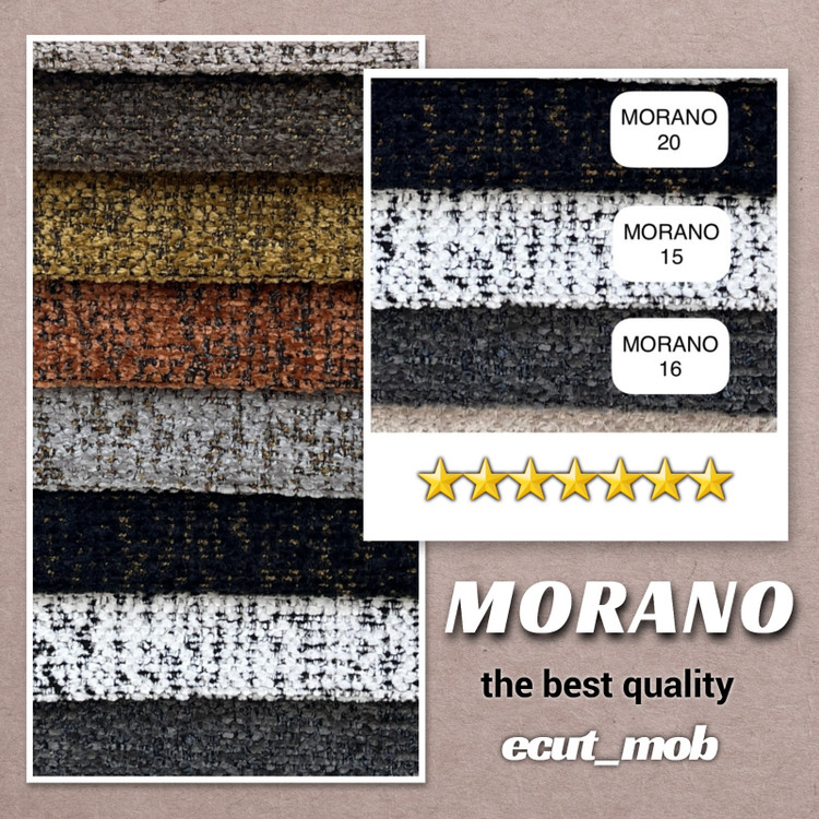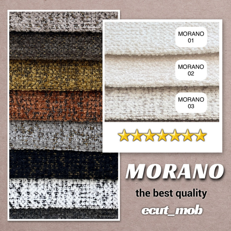 این پارچه به دلیل ترکیب خاص رنگ نخها، جلوهای عمیق و زنده دارد که باعث میشود مبل در هر نور محیط، حس متفاوتی از بافت و رنگ القا کند. همین ویژگی، مورانو را به انتخاب محبوب طراحان داخلی و تولیدکنندگان مبلمان تبدیل کرده است.