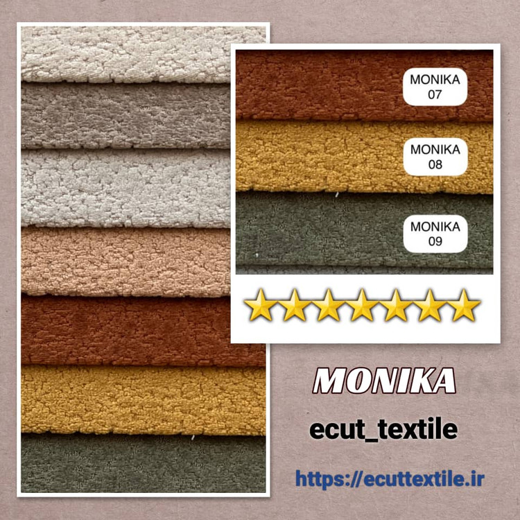 مونیکا در ۱۵ رنگ جذاب تولید شده و بافت نرم و لطیف آن حس گرما، امنیت و آرامش را در فضا ایجاد میکند.