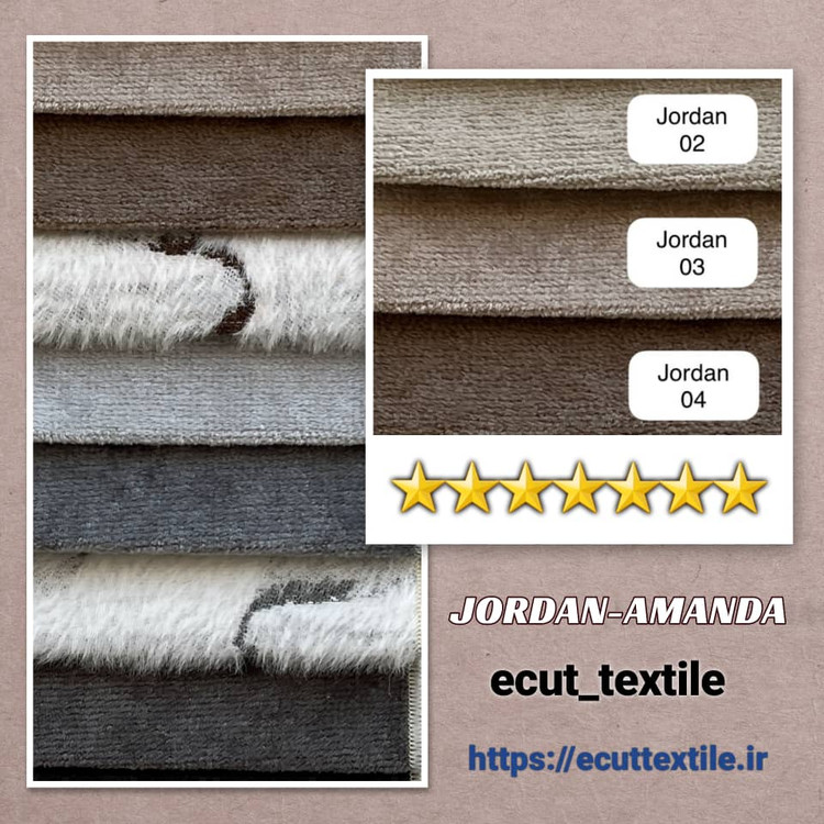 پارچه جردن با 9 رنگ ساده و زیبا، در کنار آماندا با طرح پتینهای و 4 رنگ خاص، انتخابی لوکس برای مبلهای راحتی و مدرن است.